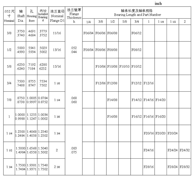 JS1 系列翻邊軸承英制尺寸