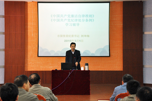 2016年3月1日下午,公司黨委書記、董事長曾凡沛在俱樂部會議室主持開展《中國共產(chǎn)黨廉潔自律準則》、《中國共產(chǎn)黨紀律處分條例》(以下簡稱《準則》、《條例》)專題學(xué)習(xí)活動,漳州市國資委紀委書記柯坤海受邀進行了《準則》、《條例》宣講。公司總部及子公司中層以上管理人員、各黨支部委員、業(yè)務(wù)部門黨員、黨員職工代表、黨員班組長、黨員助理級以上技術(shù)管理人員等200多人參加了學(xué)習(xí)活動。