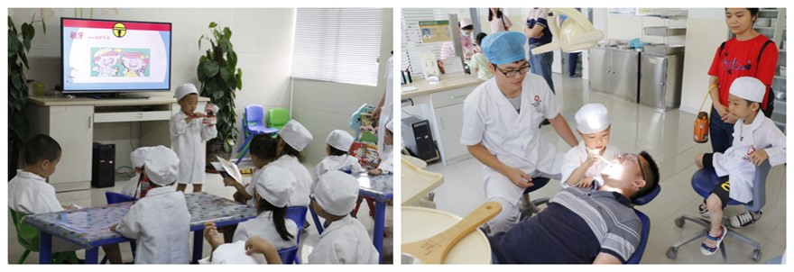 活動當天,小朋友變身“小牙醫”開始體驗之旅,在寓教于樂的角色扮演中了解到壞牙的樣子和產生原因,學習到各種牙齒小常識,認識了愛牙、護牙的重要性,還學會了正確的刷牙方法--巴士刷牙法。最后,親子活動在小朋友們舉起“優秀小牙醫”獎狀的合影中圓滿結束。