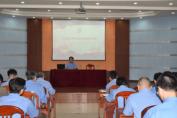 ????2019年11月8日下午,公司黨委副書記康安偉在公司俱樂部講授《牢記初心使命 做合格黨員干部》專題黨課,其所在支部及掛鉤部門/車間黨員聆聽學習??蛋矀ブ赋?,要通過主題教育讓我們回到當初出發的起點,回歸黨章黨規的基本要求,時刻不忘黨員的宗旨義務,不忘入黨時許下的錚錚誓言,做一名具有鐵一般信仰、鐵一般信念、鐵一般紀律、鐵一般擔當的合格共產黨員。他結合公司實際及近期調研成果,主要圍繞“牢記初心使命,不忘黨員第一身份;對照黨章黨規,聯系實際找不足;踐行黨員干部責任,加強黨的建設;感悟初心使命,做合格黨員干部”等內容開展講述。