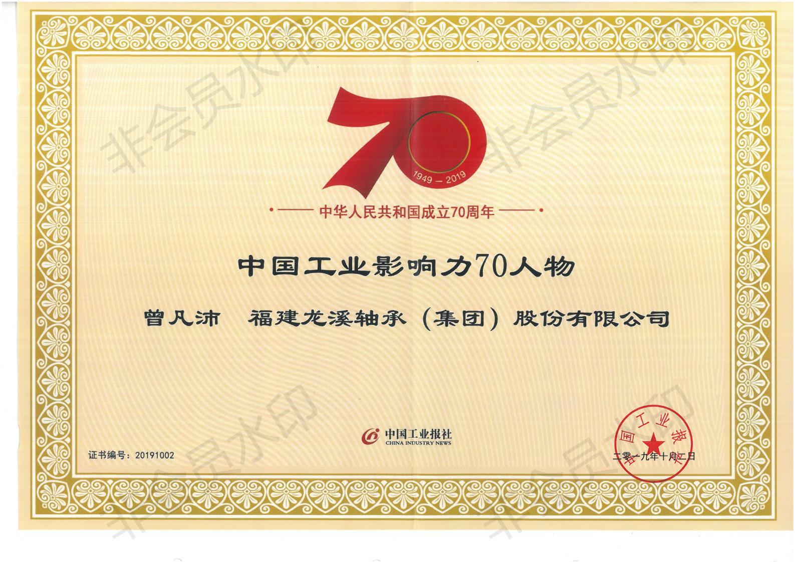 ????會議表彰了中華人民共和國成立70周年中國工業影響力70企業、70品牌、70人物,薈萃了新中國成立70年來中國工業企業從無到有、從小到大、從弱到強并最終成為世界一流的優秀工業企業、人物、品牌。公司黨委書記、董事長曾凡沛榮膺“中華人民共和國成立70周年中國工業影響力70人物”。