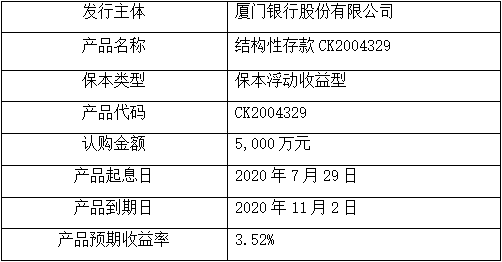 委托理財產(chǎn)品名稱:結(jié)構(gòu)性存款產(chǎn)品CK2004329。