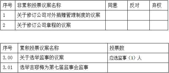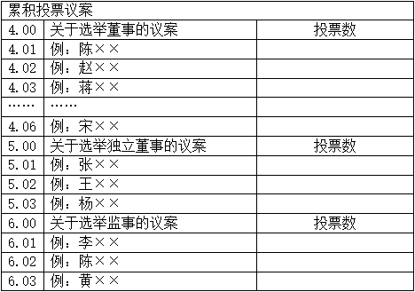 三、股東應以每個議案組的選舉票數為限進行投票。股東根據自己的意愿進行投票,既可以把選舉票數集中投給某一候選人,也可以按照任意組合投給不同的候選人。投票結束后,對每一項議案分別累積計算得票數。