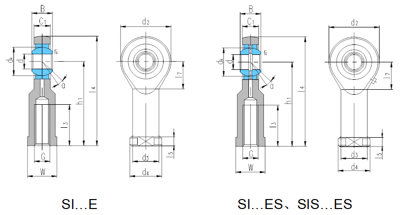 產品特點:組裝桿端關節軸承由桿端體和向心關節軸承GE…E或GE…ES組裝而成,桿端體材料是碳鋼,表面鍍鋅;除型號后置代號為E外,其余型號可通過油杯或桿端眼孔潤滑。