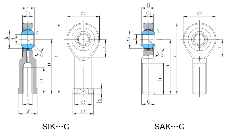若是左旋螺紋,軸承型號和螺紋標記需加“L”和“左”,例如:SILK20C  M20×1.5左-6H,  SALK20C M20×1.5左-6g。