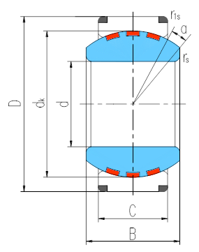產(chǎn)品特點:外圈沿軸向剖分成兩半,用鎖圈固定,外圈材料為軸承鋼,淬火,磷化,球面鍍硬鉻;內(nèi)圈材料為銅合金,球面鑲嵌固體自潤滑材料。