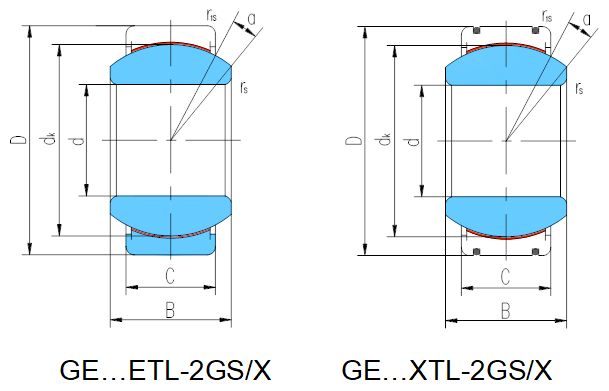 產(chǎn)品特點:外圈有一道軸向縫,材料為不銹鋼,淬火,球面粘貼PTFE編織物;內(nèi)圈材料為不銹鋼,淬火。型號后置代號為XT,表示外圈沿軸向剖分成兩半,用鎖圈固定。
