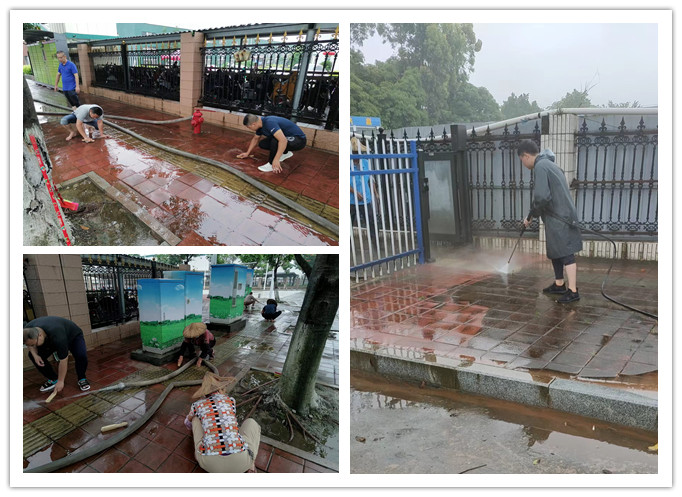 近期受降雨影響,廠區外多個路段大量積水,造成路面打滑,同時把大量淤泥、沙石和白色垃圾沖到人行道,給行人出行帶來極大不便,造成安全隱患,也影響了市容市貌。為助力創城攻堅,廠區管委會迅速組織人員,開始排水清淤工作,按照“沖洗-濕掃-擦洗-灑水”的清潔流程,用水管、抹布、刷子等工具對廠區外人行橫道、停車場等地方進行清潔,確保無路面積水、青苔、積垢,使路面恢復干凈整潔。