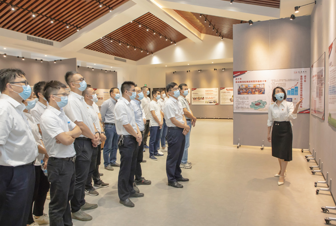 2022年11月1日,龍軸集團組織業(yè)務主辦以上干部及員工代表160余名,由集團黨委委員、常務副總經理鄭長虹,黨委副書記劉明福,黨委委員、紀委書記、監(jiān)察專員王志劼,黨委委員、副總經理張逸青,黨委委員、副總經理林通靈,財務總監(jiān)曾四新,總工程師林振元帶隊,分三批前往參觀漳州市國資委主辦的“國企發(fā)展這十年成就展”。