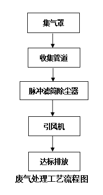 該項目砂帶機廢氣風量小,主要為細小顆粒粉塵,選用脈沖濾筒除塵器處理粉塵,初步流程見下圖。