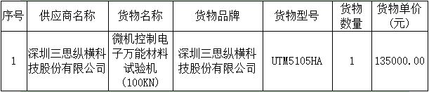 微機(jī)控制電子萬(wàn)能材料試驗(yàn)機(jī)(100KN)采購(gòu)與安裝中標(biāo)公告