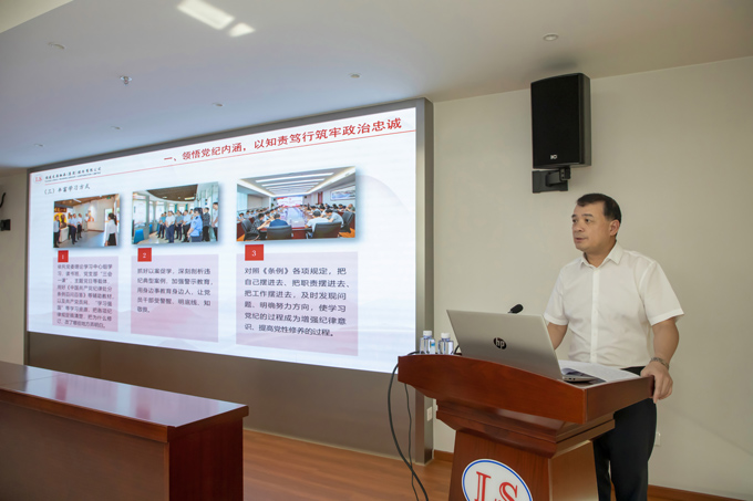 陳晉輝從“領(lǐng)悟黨紀內(nèi)涵,以知責篤行筑牢政治忠誠”“明晰紀律要求,以明責敢為落實主體責任”“涵養(yǎng)清正風氣,以擔責奮進推動公司發(fā)展”等三方面進行了深入闡述。他指出,黨的紀律是黨的各級組織和全體黨員必須遵守的行為規(guī)則,全面深入學習黨的紀律是每一名黨員和領(lǐng)導干部必須完成的政治任務(wù)。公司黨員干部要堅持“學”在先、“悟”在深、“踐”在實,真正領(lǐng)會黨的紀律的實質(zhì)和內(nèi)在要求,進一步強化紀律意識、加強自我約束、提高免疫能力,增強政治定力、紀律定力、道德定力、抵腐定力。
