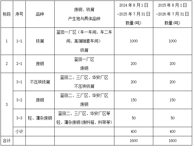 (1)招標人藍田一廠區(地址:福建省漳州市龍文區龍祥北路8號)廢鋼包含鍛工車間生產過程中產生的鍛造料芯、廢套圈、料段等和車工一車間、車工二車間、高端軸套車間生產過程中產生的廢套圈等。