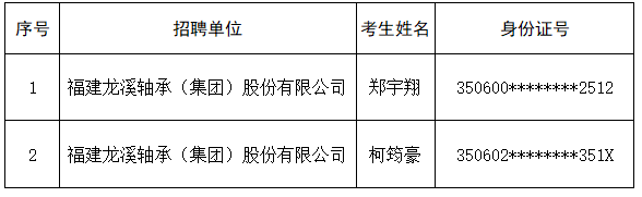 福建龍溪軸承(集團)股份有限公司關(guān)于2025年“市屬國有企業(yè)優(yōu)質(zhì)人才儲備庫”擬聘用人員的公示