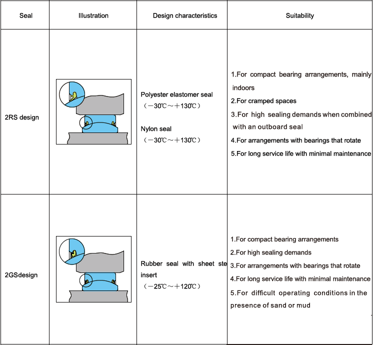 ????Most  of  the bearings must  be equipped with seals to prevent  the dirt  and moisture from entering.  The efficiency of the sealing has a decisive influence to the service life of the bearing. LS seal has two types, see table 12.