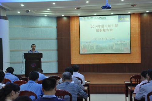 2015年4月27日至28日晚上,公司舉行2014年度中層主管述職報告及中層互評會議。公司高管及公司的92名中層主管參加了會議。此次述職報告44名中層主管代表本部門、車間作2014年—2015年上半年工作總結匯報。之后,公司高管及中層主管分別填寫《2014年度中層主管考核評價表》,開展中層主管評價及互評工作。