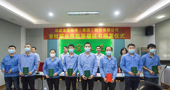 2020年11月19日上午,龍軸集團(tuán)首批職業(yè)技能等級證書頒發(fā)儀式在公司二樓會議室隆重舉行。這是漳州市首家按照“誰評價、誰發(fā)證、誰負(fù)責(zé)”原則對首批163名通過企業(yè)職業(yè)技能等級認(rèn)定考核的職工頒發(fā)技能等級證書。漳州市人力資源和社會保障局副局長林貴達(dá),龍軸集團(tuán)黨委書記、董事長陳晉輝,黨委副書記劉明福等領(lǐng)導(dǎo)出席頒證儀式,40多名取得首批公司職業(yè)技能等級證書的職工代表及考評員代表參加。頒證儀式由劉明福主持。