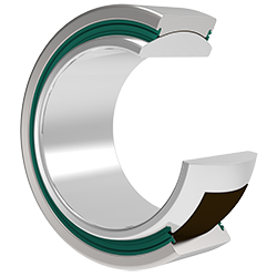 產品編號:GEC…XTL-2RS 320~630 滑動磨擦副: 鋼/PTFE編織物 產品特點:外圈沿軸向剖分成兩半,用鎖圈固定,外圈材料為軸承鋼,淬火,球面粘貼PTFE編織物;內圈材料為軸承鋼,淬火,球面鍍硬鉻,后置代號有-2RS為外圈兩端帶有密封圈。 使用溫度范圍:-30℃~+130℃ ...