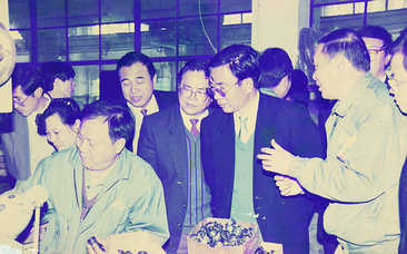 1997年6月6日,陳文釗(時任福建省機械廳廳長,左二)視察龍軸