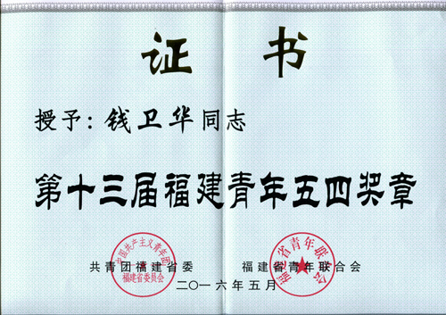 據悉,“福建青年五四獎章”是共青團福建省委、福建省青年聯合會授予福建省青年集體和個人的最高榮譽,其評選旨在集中展示廣大青年在推動福建科學發展跨越發展中的積極作為,進一步在廣大青年中形成崇尚先進、學習先進、爭做優秀人才的風氣。