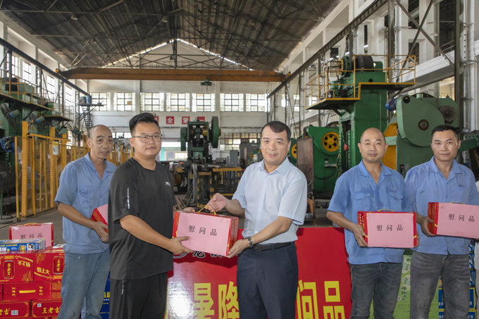 慰問過程中,慰問組詳細了解了生產一線車間的安全生產、防暑降溫措施采取情況及員工的精神狀態,檢查了車間的安全生產及工作環境,親切慰問奮戰在一線的基層員工,送上精心準備的防暑降溫物品。慰問組對一線員工不畏高溫、堅守崗位、辛勤付出予以充分肯定,反復叮囑員工們要增強自我保護意識,在堅守崗位時要注意勞逸結合、保重身體,預防高溫中暑,在生產過程中要嚴格遵守安全生產紀律,確保安全生產。