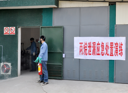 2013年3月14日下午,公司安全管理部按危險化學(xué)品危險源監(jiān)控管理要求,在藍田熱處理車間丙烷、液氨供氣點組織開展 “丙烷泄漏應(yīng)急處置”、“液氨泄漏應(yīng)急處置”兩場演練。