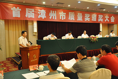 2012年9月28日,漳州市政府在漳州賓館隆重召開首屆漳州市質量獎頒獎大會,漳州市質量獎評審委員會委員單位、各縣(市、區)政府、各開發區分管領導、質監部門領導及列入《漳州市爭創省、市質量獎三年滾動計劃》的企業代表100多人參加會議,副市長洪仕建出席會議并發表講話,他充分肯定了漳州市質量工作的顯著成效,并對全市質量工作提出新要求。