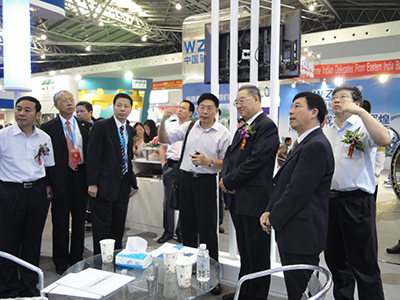 圖為公司副總經理黃繼新向參觀我司展臺的全國政協提案委員會副主任、中國機械工業聯合會會長王瑞祥先生一行詳細介紹公司情況。