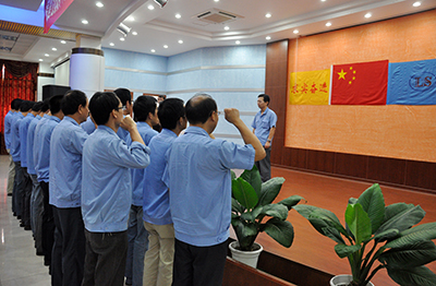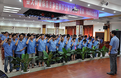 會上,陳晉輝常務副總首先宣布了《關于啟動精益項目管理的通知》,對項目范圍、目標、組織架構、項目小組人員和參與精益推進的相關各部門人員的職責做出明確規(guī)定,確保公司精益項目實施工作能夠按《精益項目計劃書(一期)》計劃內容順利進行,在2014上半年實現系統提績達標。企管部施毅群部長隨即就精益項目主體實施計劃與推進管理考核制度要點做了簡要講解。車間主管張高德、班組長張步斌分別代表公司中層主管和班組長發(fā)言,并帶領大家向公司董事長曾凡沛進行莊嚴的集體宣誓。協力中興董事長邱模榮也代表咨詢公司在會上發(fā)表了服務承諾。會議過程緊湊、氣氛莊嚴而又熱烈。