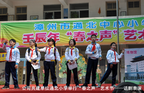 2012年3月30日上午,公司關工委委員洪麗玲、何碧珠等受我司共建單位—通北中心小學邀請,參加通北中心小學一年一度的“春之聲”校園文化藝術節活動。