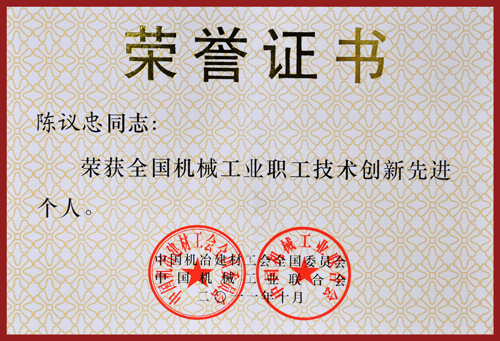 | 個(gè)人 | 第二屆機(jī)械工業(yè)高技能人才優(yōu)秀論文(技能類)二等獎(jiǎng)(陳崇明 顏楊豐) | 中國機(jī)械工業(yè)企業(yè)管理協(xié)會(huì),中國機(jī)械職業(yè)技能鑒定指導(dǎo)中心 | |